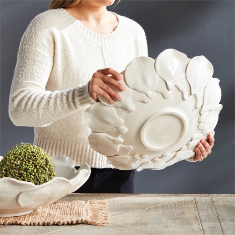 Each and every petal is handmade, and hand-applied by Italian artisans in Tuscany, Italy. A seamless design in a soft white glaze and delicate antiquing along petal edges. Each piece is a true original with classic Italian craftsmanship passed down through generations.