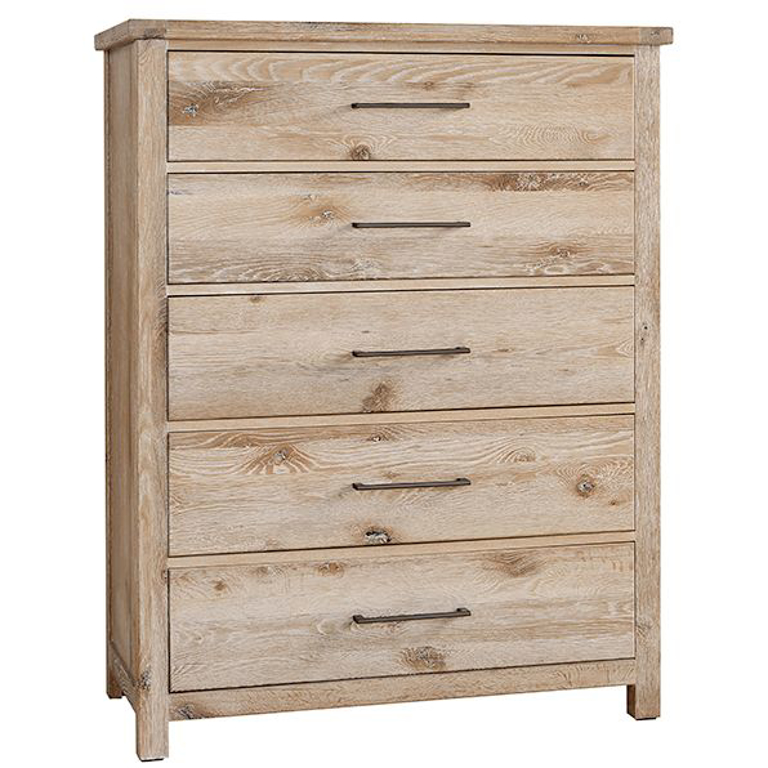 5 drawer chest with all the splits, cracks, knot holes – all of the aging and refining that can only be provided by Mother Nature herself. English Dovetail design in the top front corners of the top.