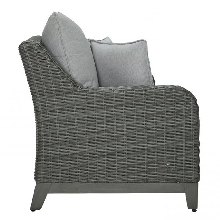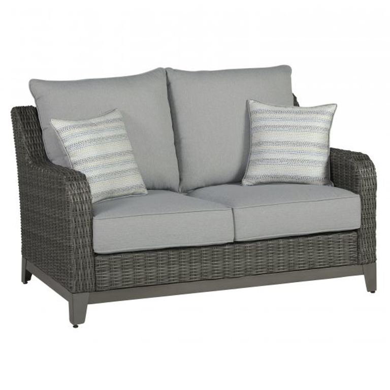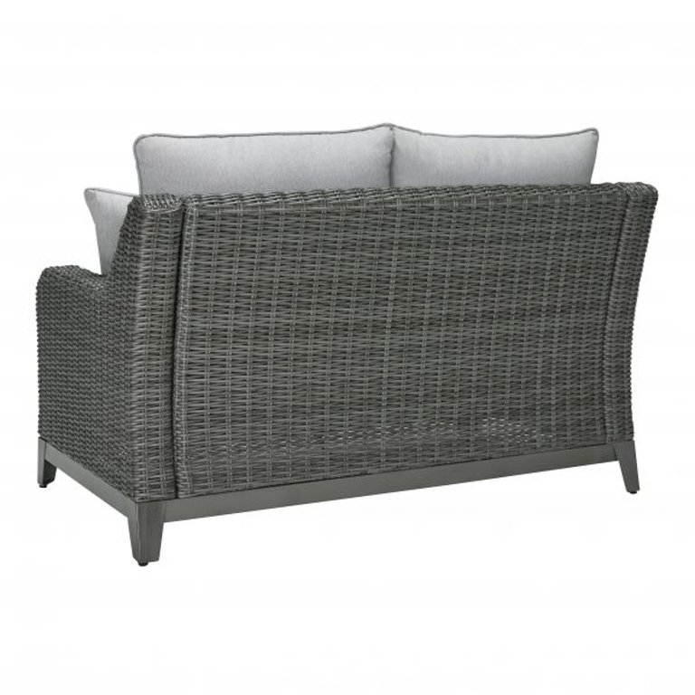 Add a distinguished touch of gray to your outdoor living space with this loveseat. It's made with resin wicker over an aluminum frame for a relaxed look that provides seasons of enjoyment. Rest assured, the thick seat and back cushions are wrapped in Nuvella® high-performance fabric that’s fade-resistant, stain-resistant and a breeze to clean.