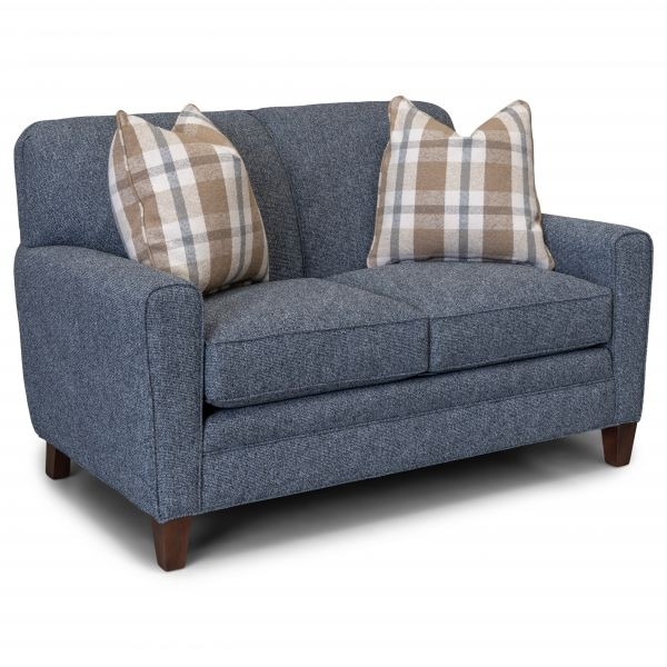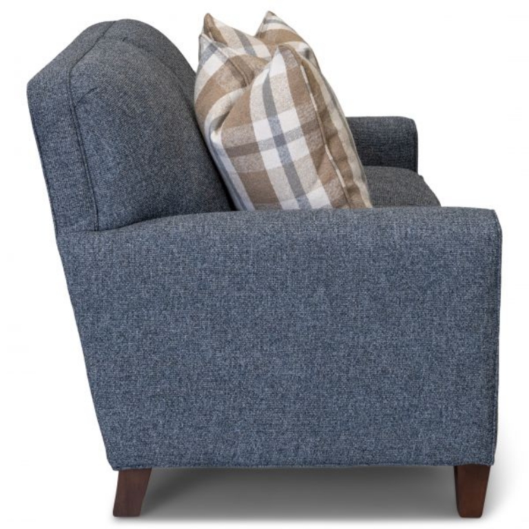 This loveseat by Smith Brothers is made with quality and durability in mind without compromising your comfort. The frame is built with kiln-dried Maple hardwood that limits warping, twisting or swaying, and is guaranteed for life! All seat cushions use Qualux Ultra Foam 2.5 density cores to provide durability and extra support. Seat cushions are loose and reversible for extended wear. The exposed tapered legs are built-in non-removable and a choice of wood finishes are also available. This style is also available in leather. Optional fabrics and finishes are available in store.