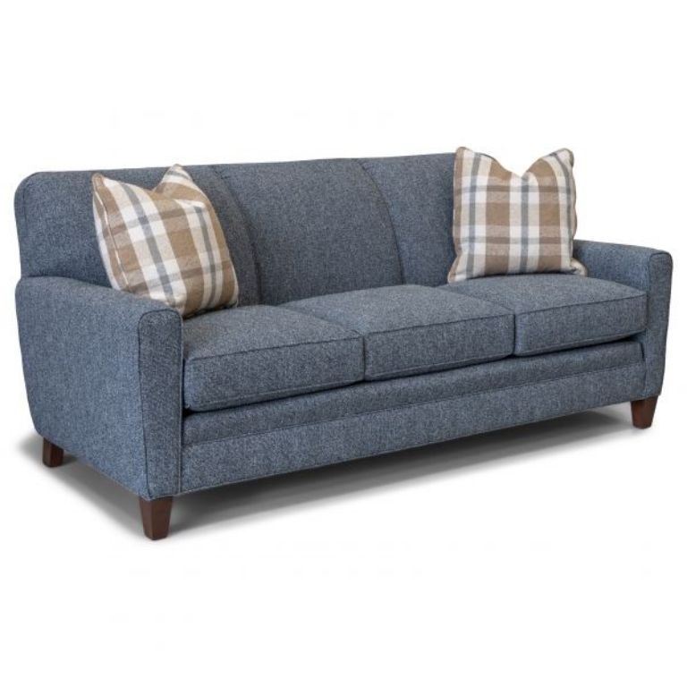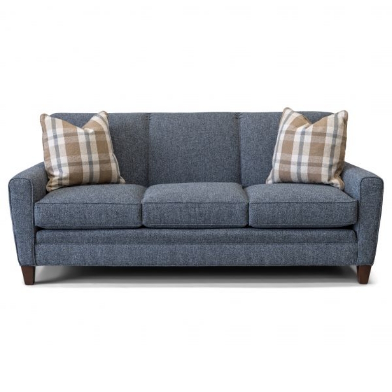 This three seat sofa by Smith Brothers is made with quality and durability in mind without compromising your comfort. The frame is built with kiln-dried Maple hardwood that limits warping, twisting or swaying, and is guaranteed for life! All seat cushions use Qualux Ultra Foam 2.5 density cores to provide durability and extra support. Comfort wrinkles are designed to appear in this style to enhance the exceptionally soft feel of the seat and back cushions. Back Style: Pullover inside back. Legs: Built-in tapered legs (non-removable). Wood Finish: Shagbark. This style is also available in leather. Optional fabrics and finishes are available in store.