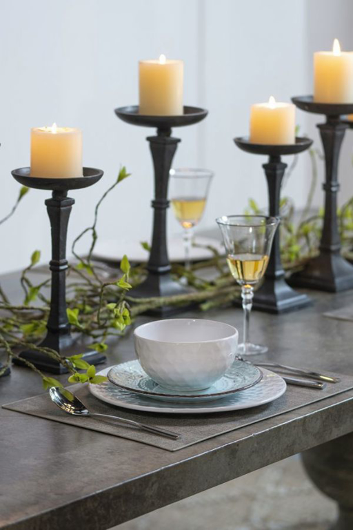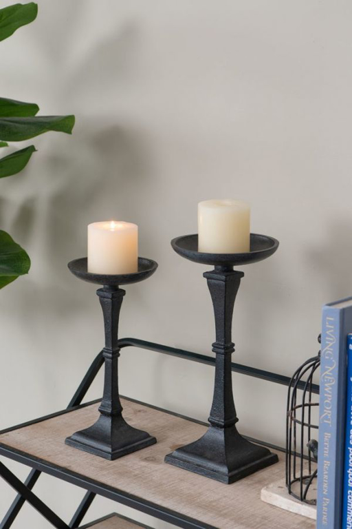 The Fabius Candle Holder makes a dramatic statement with its metal construction, matte black finish, and sharp classic style. This piece stands at over 13″ to make a visible impression without overwhelming other parts of your carefully-crafted decorative arrangement. Use to display your favorite pillar candles, whether real or electric.