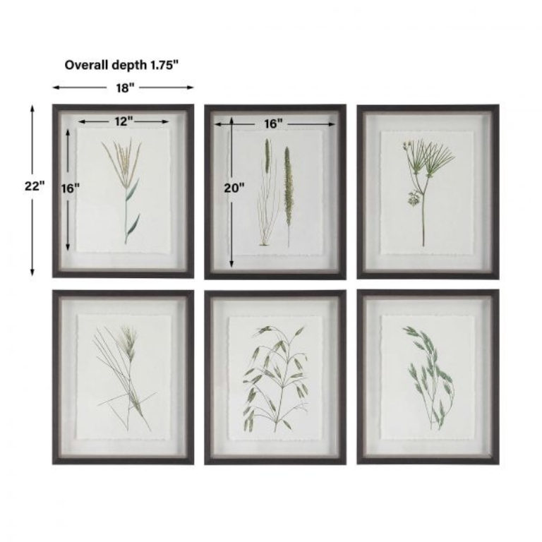 Bring the great outdoors in with the Forest Finds artwork. This set of exclusive prints exhibit nature's finest findings printed on textured art paper with delicate deckled edging. Framed shadowbox style, each print is mounted against a textured paper backing in a dark espresso finished frame and rustic gray liner under glass.