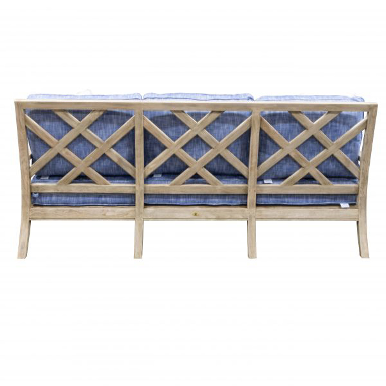 The Haley Sofa is an essential addition to any outdoor living space. Made of durable, marine-grade teak, it features a finely detailed latticework back, scalloped armrests, and tapered legs for a classic look. Add plush Dream Cushions for ultimate comfort.