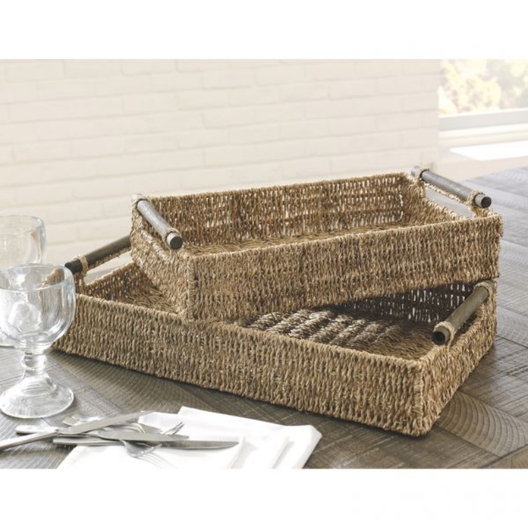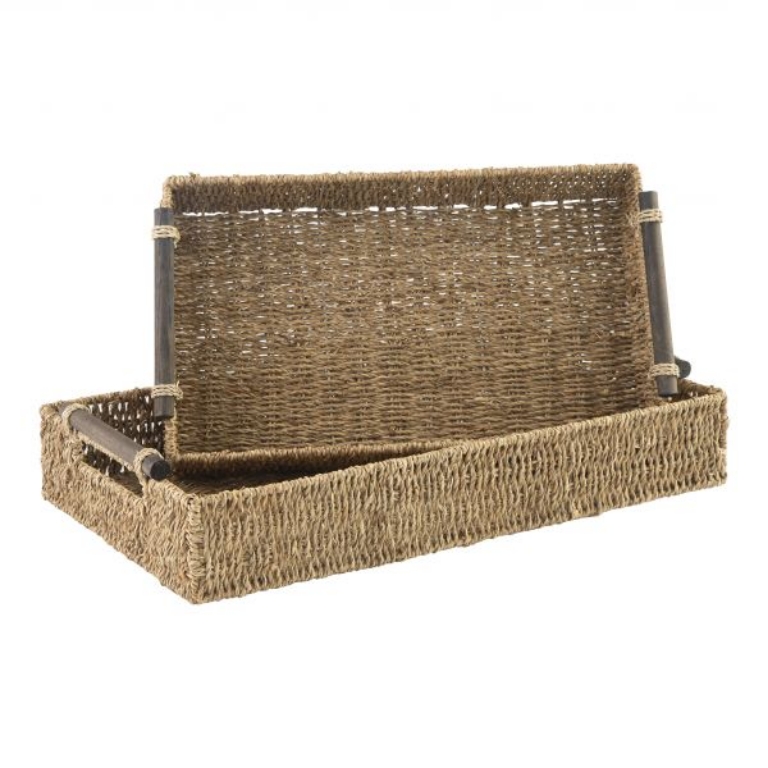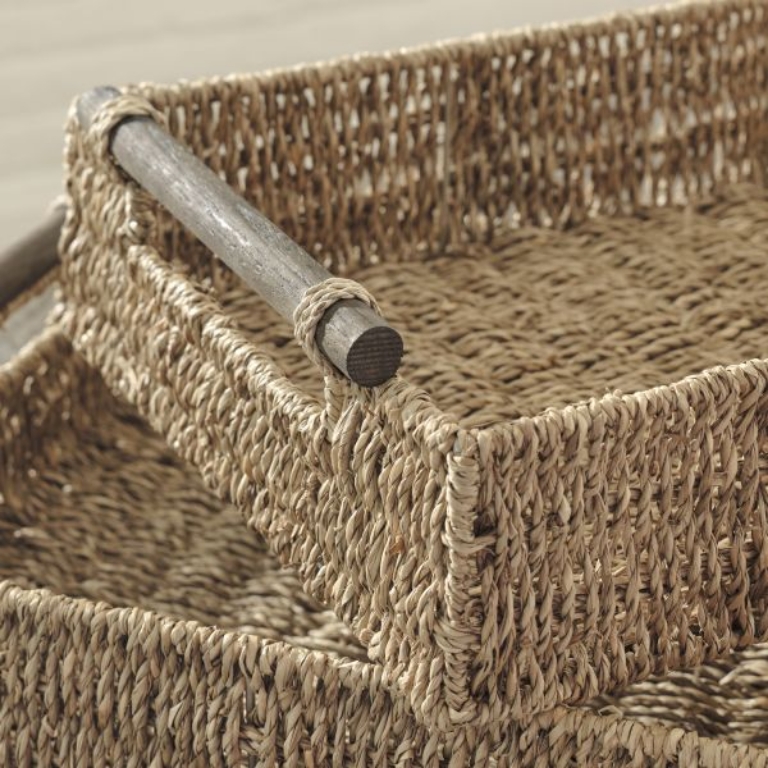 This tray set with cutout wood handles adds a lovely natural appeal to nearly any room. Woven from seagrass in a neutral finish, these lovely trays make a great pick for everything from displaying decorative elements to storing essentials like remotes, game controllers, and much more.
