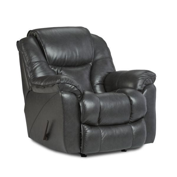 The Henry Charcoal Rocker Recliner by Homestretch Furniture introduces comfort and elegance to your living space. Designed for those who appreciate the finer things in life, this large-scale rocker recliner embodies luxury and relaxation. Crafted from top-grain cowhide leather, it offers a plush seating experience that is durable and sumptuously soft. Whether you're looking to create a cozy reading nook or the perfect spot to unwind after a long day, the Henry Charcoal Rocker Recliner stands ready to meet your comfort needs with its stylish design and unparalleled support. Elevate your home décor and enjoy the ultimate relaxation with this exquisite piece from Homestretch Furniture.