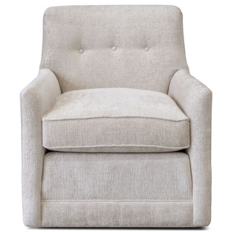 If you're looking to never miss a thing from the comfort of your chair, the Isabella Swivel Chair by Smith Brothers has the perfect features to give you exactly what you need when it comes to your living room seating. This chair features a pullover back style with three buttons, deco arms, a reversible seat cushion for extended wear and swivel motion base. Fabric or leather cover available among various options at your choice.