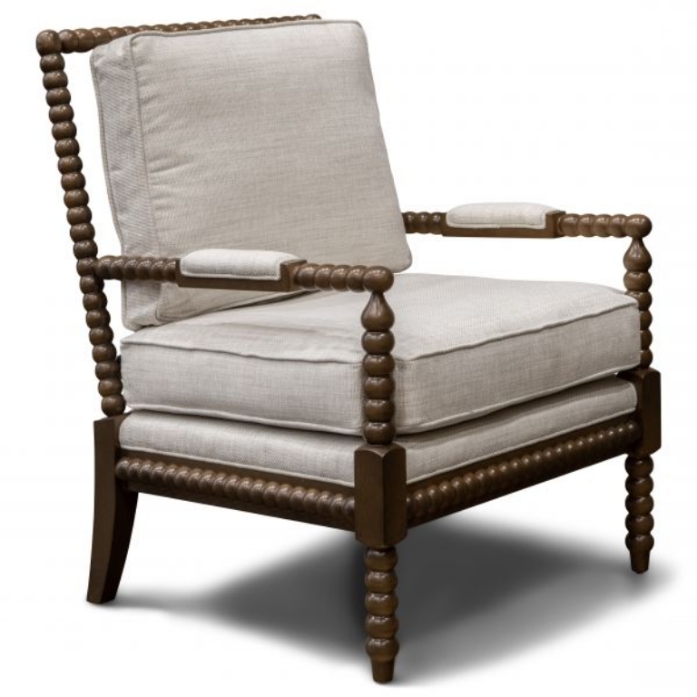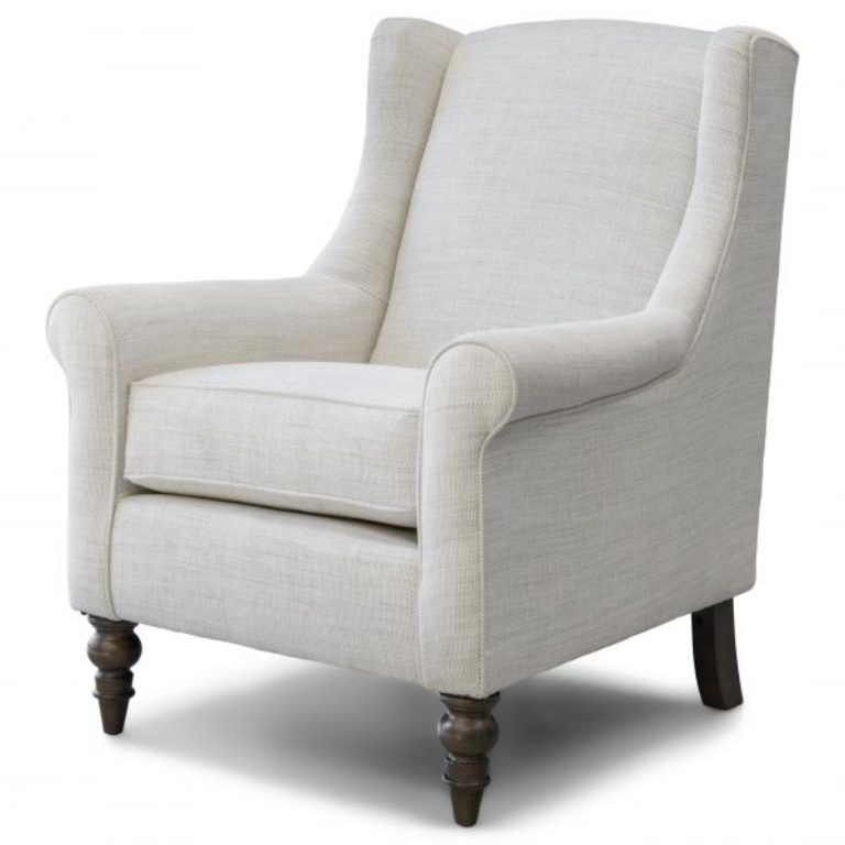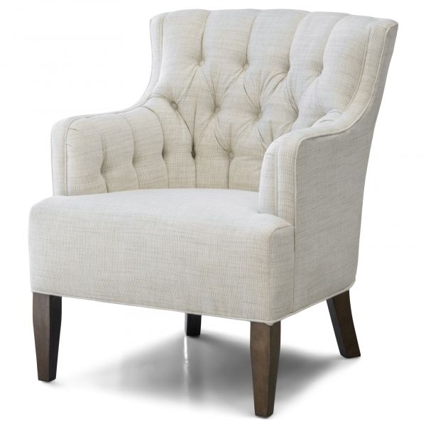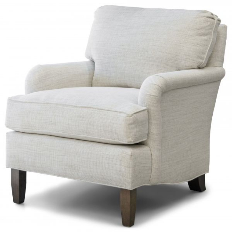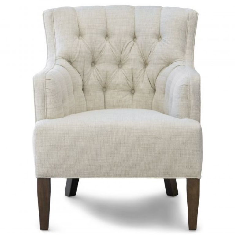 Simply elegant, this chair is full of subtle detailing. First is the deep button tufting on the inside back and arms. Then notice the beautiful shaping of the arm that gently slopes from the back with a narrow banded trim. The elegantly tall legs add a modern edge to this classic but unique piece.