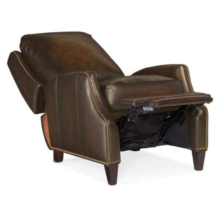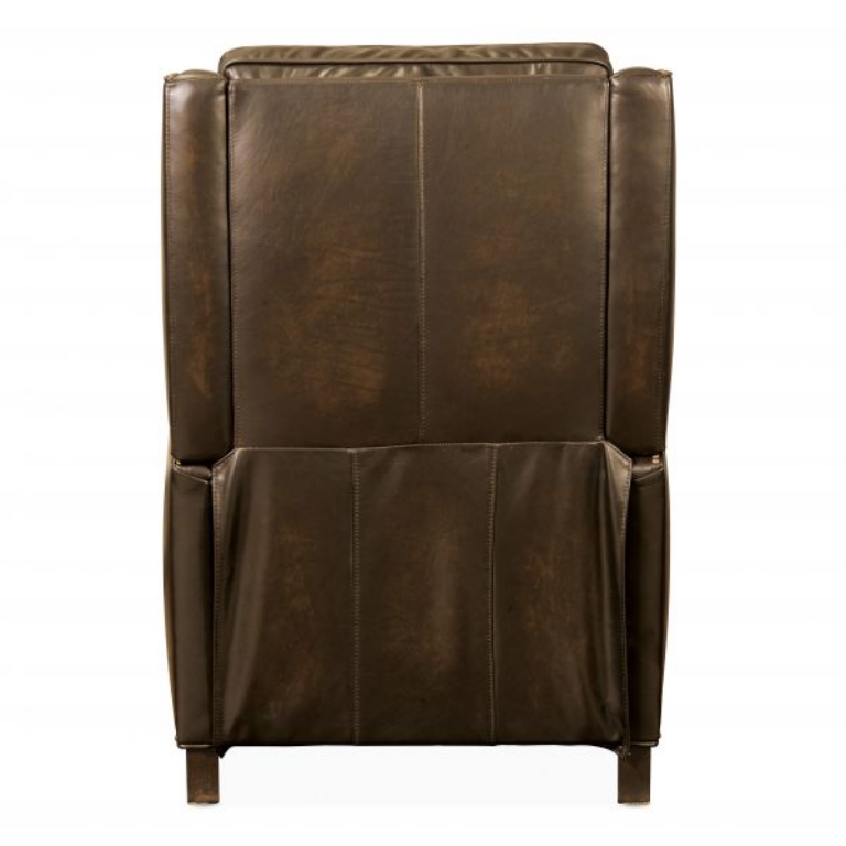 Tailored and timeless, the Kerley Pushback Recliner is an instant casual classic. The Kerley Recliner is crafted using Sarzana Fortress G/S (Medium Brown) leather. Hooker Furniture Upholstery is a designer-inspired collection of upscale leather seating that includes versatile reclining chairs, modern-day reclining sofas, eclectic club and artisan accent chairs, as well as a selection of executive desk chairs for the home. Designed and curated to appeal to a variety of style tastes, each piece from Hooker Furniture Upholstery is meticulously crafted in a unique selection of textures and hues.