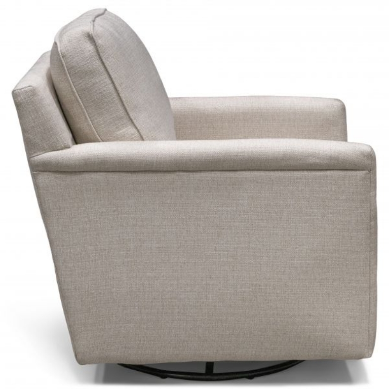 The Laura Swivel Glider Accent Chair features a loose back and loose seat cushion that can be reversed to prolong the life of the cushion, as well as the life of the fabric. The sleek track arms are outlined with a small welt to give it flair and definition. The swivel glider looks small to fit in most any room but sits big for both men and women. This piece is an attractive stand-alone chair but also works well in pairs for entertaining large groups.