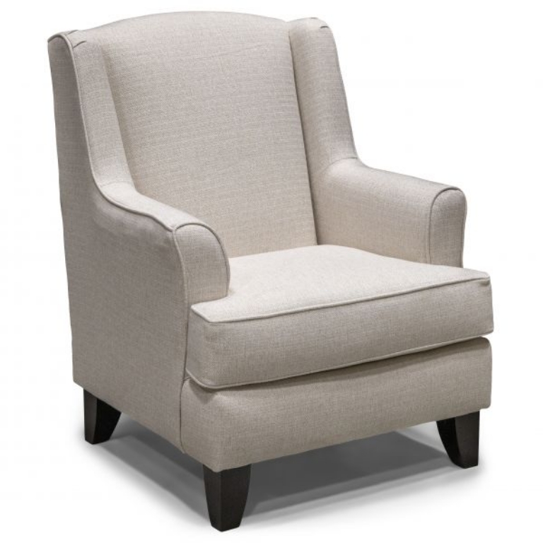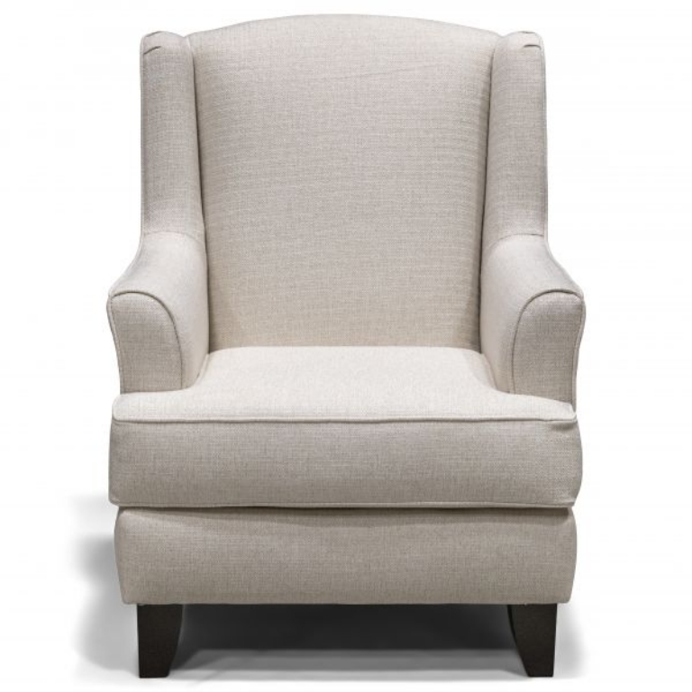 The Lauren accent chair features a solid neutral cover, a slightly flaired arm with a tight back, loose box border T-cushion and flared coffee finish legs. This occasional chair is a beautiful compliment to most any room, but can also be a beautiful stand-alone chair. The fabric is not only beautiful but also durable.