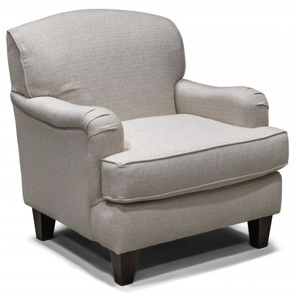 The Lily Accent Chair is a fashion statement all to its own with its sloping, graceful arms, tapered wood legs in a dark coffee finish and it's t-cushion that is loose and reversable. Being reversable, you can rotate your cushion to prolong the life of the cushion core as well as the fabric. This tight back is sloped giving it visual interest that can be used to coordinate with your existing furniture or it can be used all on its own to be the focal point of any room.