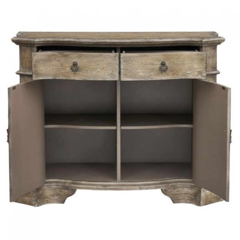 Function and beauty are just two characteristics of this amazing cabinet. A distinctive scalloped shape flows from the top beveled edges to the shapely feet below, while our distressed Niko Russet Brown adds an aged appearance to the natural wood tones. This cabinet has that antique quality, plus all the storage room you need. Ideal for your dining room, foyer or den.