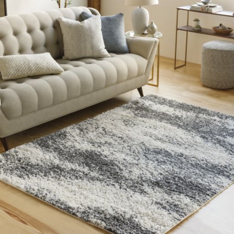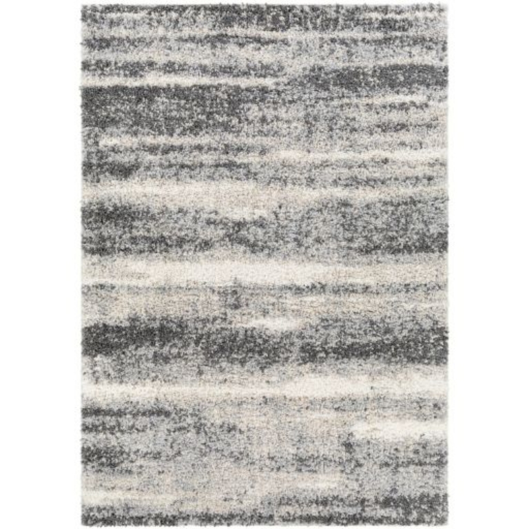 Add an artful, abstract accent to your home with this rug. Gray and charcoal shadings are set against an ivory ground, the design recalling impressionistic brushstrokes on a canvas. Its fibers are woven into a plush, soft pile for sumptuous, long-lasting beauty.