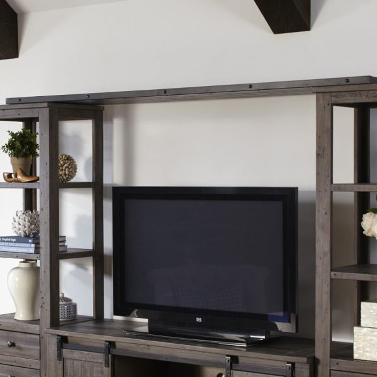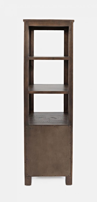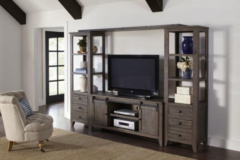 The Madison County Media Pier offers a mix of rustic and natural styling to create a stately yet rustic farmhouse appeal! Crafted from reclaimed Pine in a lightly distressed finish, the design includes planked sides, top and shelves as well as tapered wood block legs. Three drawers are accented with dark metal knob hardware.