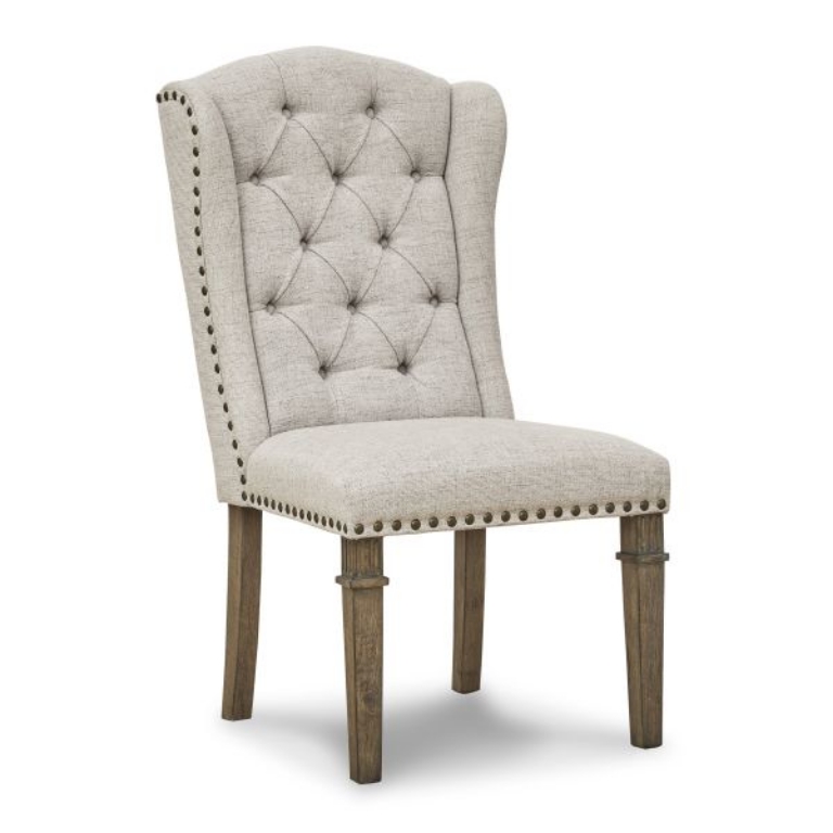 Curate a vintage-inspired retreat from the modern world. This dining chair is draped in a dreamy finish, with a contoured slat-back design and beige polyester upholstery that provide a picturesque finishing touch.