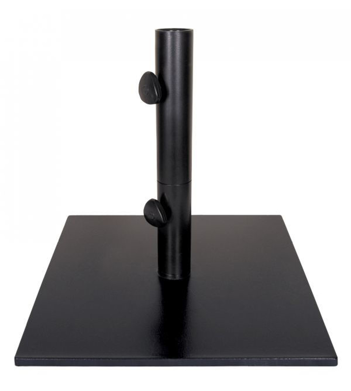 The Market Umbrella Steel Base is a clean-cut, low-profile base option for your new sunshade. Made for residential use, this base is ideal for lightweight market umbrellas and smaller patios. Its dual-purpose stem makes it easy to adjust your umbrella to fit different patio table heights. It is available in a black, rust-proof finish and will fit any umbrella pole up to 1.5" in diameter.