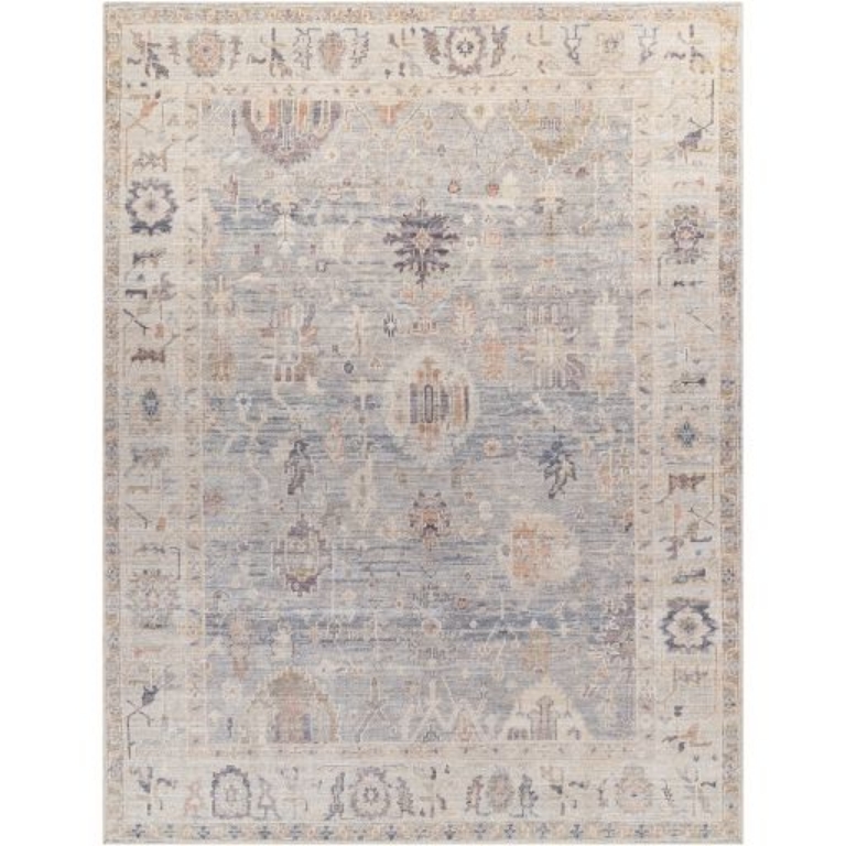 The Marlene area rug by Surya. An elegant and exquisite addition to any home, this rug will surely be a conversation starter. The polyester construction is machine-woven for durability in high traffic areas. Available to order in various sizes. For added convenience, we recommend using with a rug pad (not included).