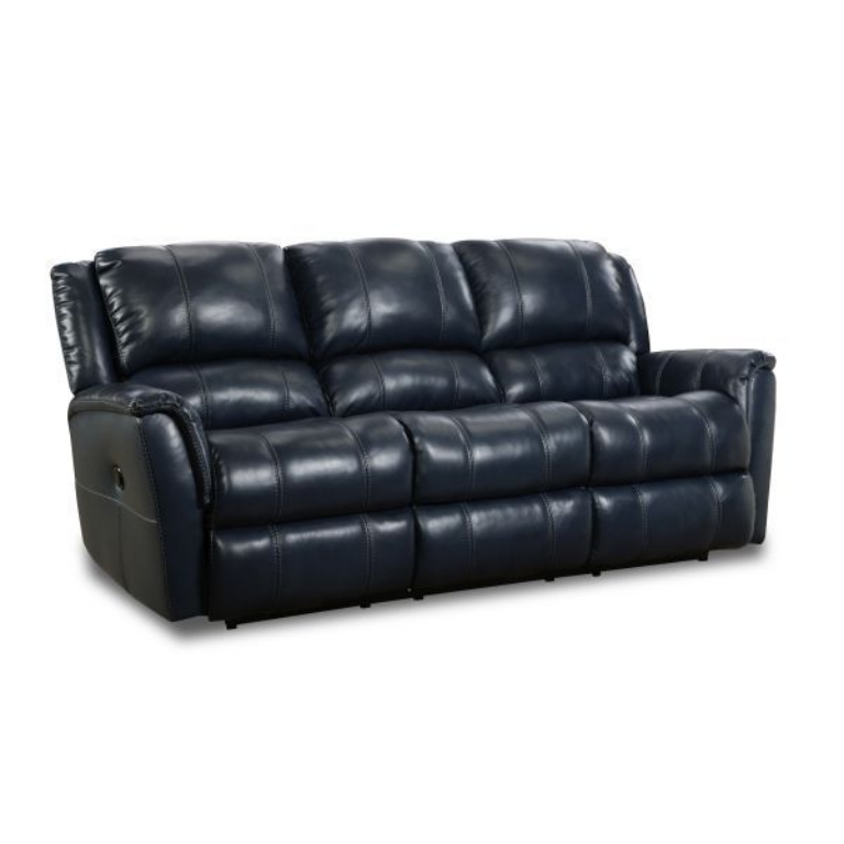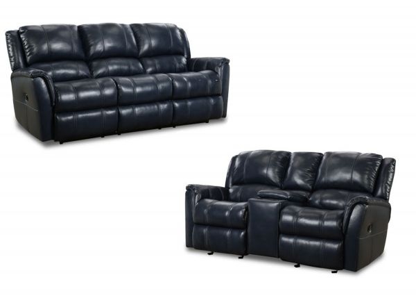 Put your feet up and relax with this casual style blue leather sofa and loveseat by Homestretch. This group features plush cushioning that will keep you comfortable from head to toe, as well as a tufted seat back and contrast stitching. Plus, it's made in America, so you can count on its quality construction.