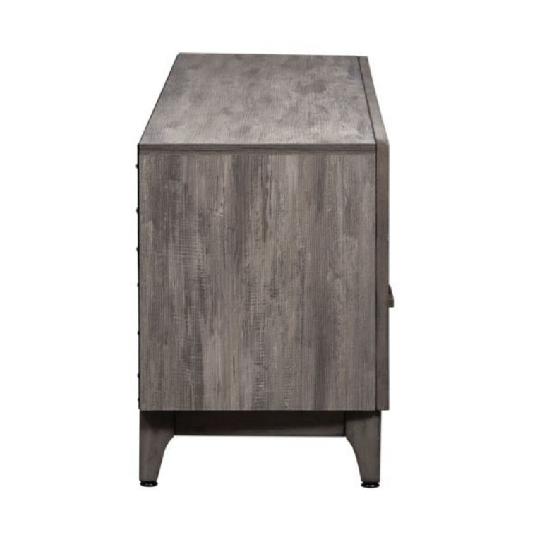Contemporary and simplistic design are combined to create the Mercury 62" tv console. Crafted with rubberwood solids and melamine, this piece accommodates most 65" TV s and features a solid wood picture frame, antiqued pewter bar pulls hardware, 2 drawers, picture framed case, anchored by tapered block style feet. The melamine is scratch resistant, sure to make this piece last in any home. The open compartment and wire management provisions effortlessly accommodate electronics or gaming equipment.