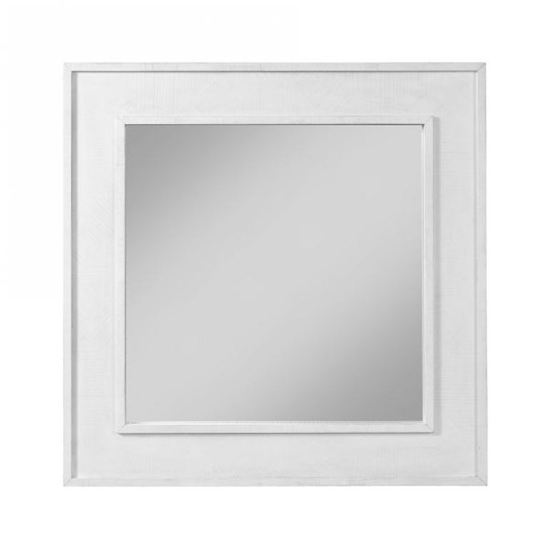 Enclosed in a wholesome, rustic off-white finished frame and subtly etched with diagonal detailing, the Square Mirror brings a soft, reflective quality to spaces.