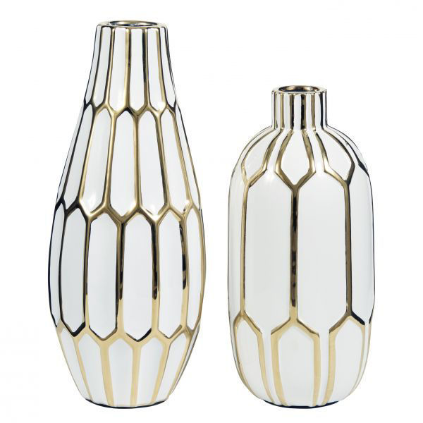 Stunning in gold-tone and white, the Mohsen 2-piece vase set is what your home’s been missing. Varying sizes in the honeycomb-inspired geometric pattern bring a visual appeal. These vases aren’t just good for looks, they’re durable enough to go outside, too. How’s that for style