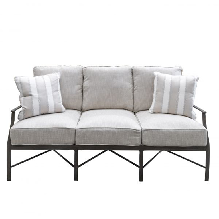 In the Monaco collection, slim, elegant silhouettes combine with gracious details. Crafted of enduring wrought aluminum, the Monaco Aluminum Sofa's refined accents, including sloping arms and the signature X-frame design, create a timeless statement.