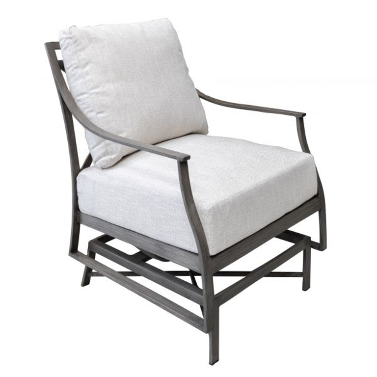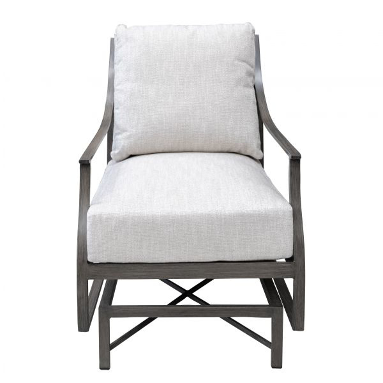 Crafted of enduring wrought aluminum, the Monaco Aluminum Spring Lounge pairs gentle movement with refined accents, including sloping arms and the signature X-frame design.