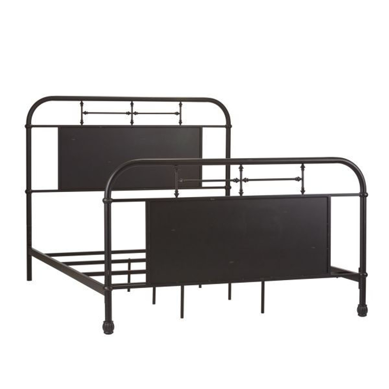 Classic vintage styling metal headboard finished in distressed Navy. The turned post give that old-world feel. Headboard can stand alone with Hollywood frame.