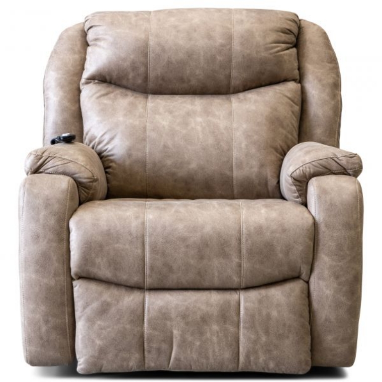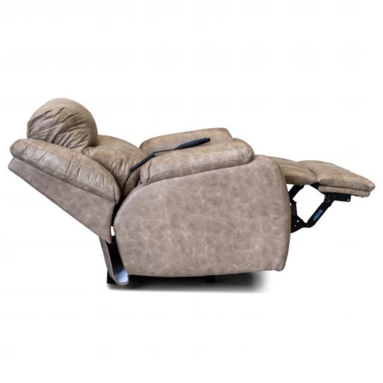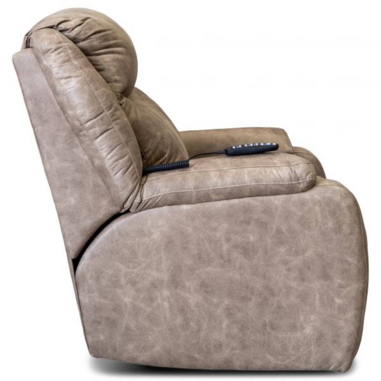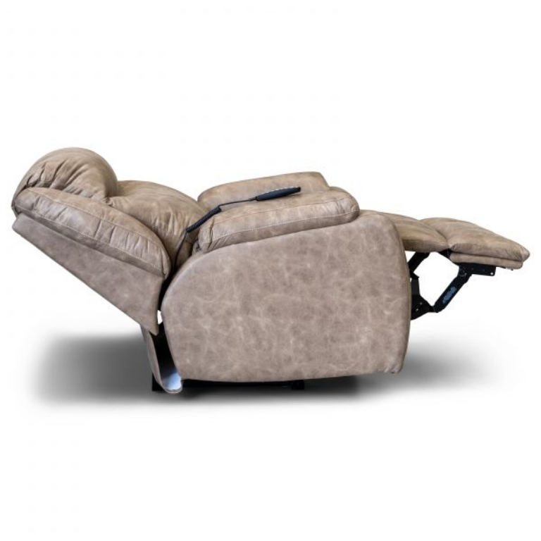 The Passion Vintage Power Recliner is strong enough to support most big and tall men. It achieves this through features such as high-density and high-compression poly-foam seat cushions, a hardwood seat box double-doweled and screwed, further reinforced with steel corner braces, and a mechanism rated to 450 lbs, which ensures years of comfort. Bold radius arms flow into padded wings, and the bustle backs and pad-over-chaise seat feature strong, angled styling.