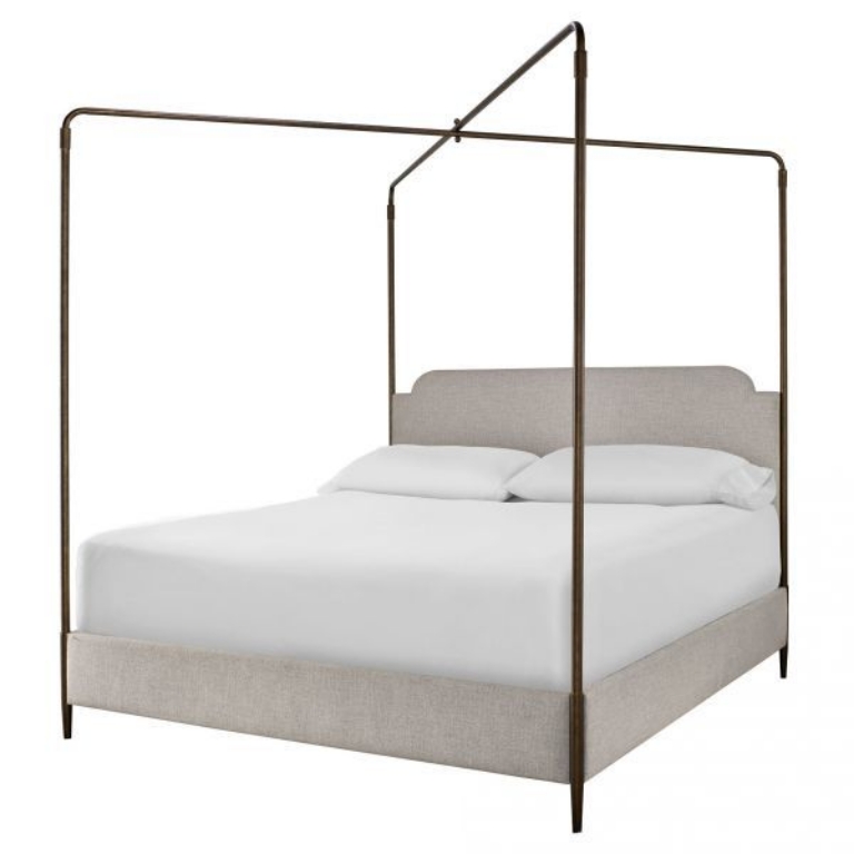 Make a stunning statement in any bedroom space with the Past Forward Metal Poster Bed, showcasing a criss-cross canopy frame, an upholstered body and a refined bronze finish.