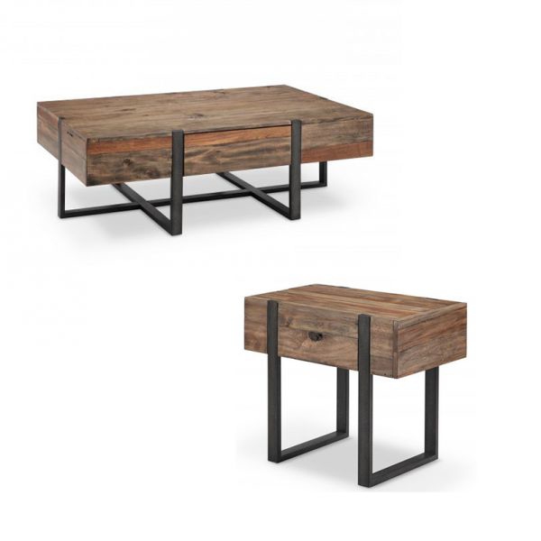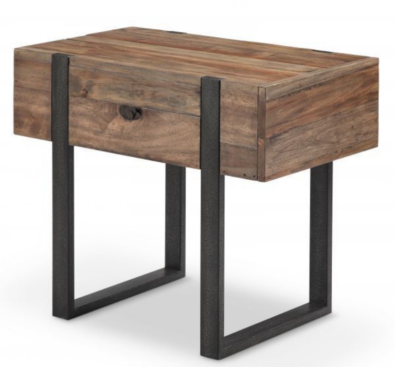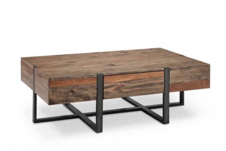Rustic, dry natural Honey finish on reclaimed wood with a hammered, distressed iron finish on the metal base.