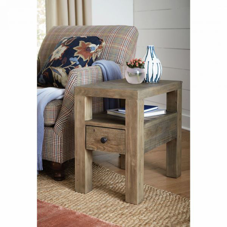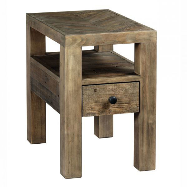 Reclamation Place Chairside Table holds true to the style by combining wood and metal components mixed with a combination of old and new designs. These designs are appropriate in a country farm house or an urban loft. The charm of the old wood is derived from repurposing what normally would be discarded material and giving it new life.