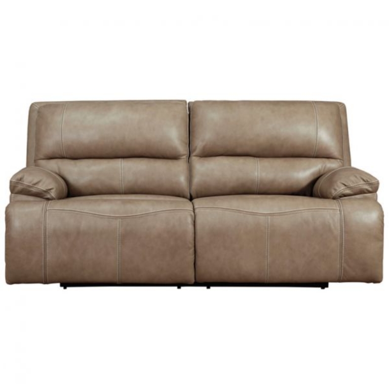 Life is much better when you can enjoy the pleasure of genuine leather—at a price to put you at ease. That's precisely what you get with this power reclining sofa. Thanks to genuine leather throughout the seating area, you have a reclining sofa that feels like a million bucks but won't break the bank. Tailored to those with an eye for contemporary design, this power reclining sofa is dressed to impress with an upscale matte finish, clean-lined divided back tufting, distinctive jumbo stitching, and chic pillow top armrests.