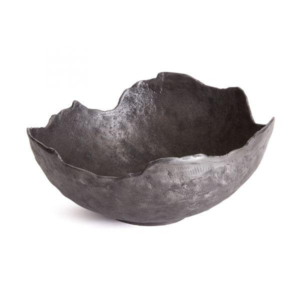 This decorative hand-sculpted bowl is made to be on display. With an oil-rubbed bronze finish and irregular edge, it is a strong statement for the modern space, styled or just as it is. The epitome of functional art.