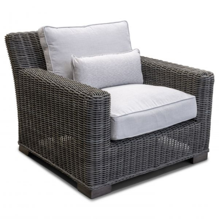 Sturdy, timeless, and built for year-round living, the Rustic Lounge Chair brings beautiful elegance to any outdoor space. Crafted from weather- and UV-resistant N-duraâ„¢ resin wicker over a heavy-gauge aluminum frame, this comfortably cushioned lounge chair has an antiqued finish and fine braiding detail for superior quality and style.