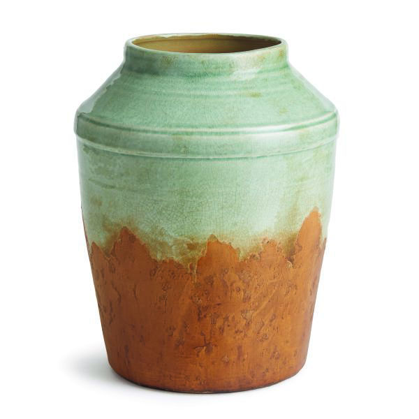 Dipped in a soft sage glaze and the other half an exposed clay, the Sandor Large Jar is an organically beautiful design. A look that is made to enhance the contemporary space.