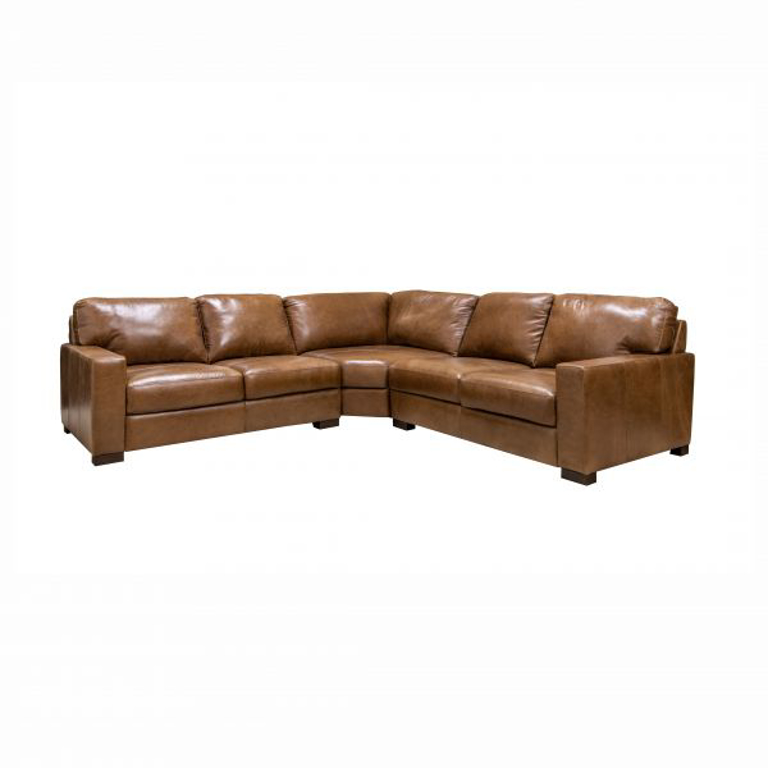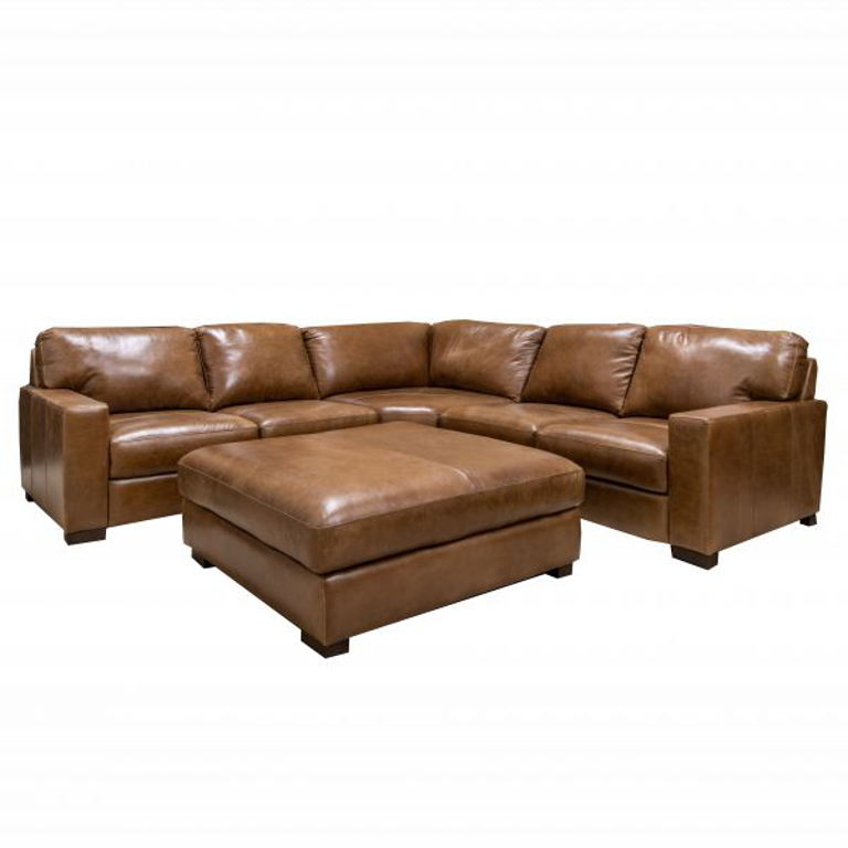 This armless chair is upholstered in Chestnut Leather. This Soft Line of America collection features all top-grain Italian leather, padded outside and back, with Pirelli webbed support seating. The beauty of this aniline leather is that it uses soluble dyes as the base coat, which allows you to maintain the natural beauty of the leather.