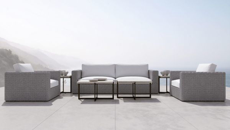 This classically inspired cocktail table will liven up any outdoor space with its terrazzo stone top and sharp-looking stainless steel-base. A protective topcoat makes it an ideal choice for outdoor use.