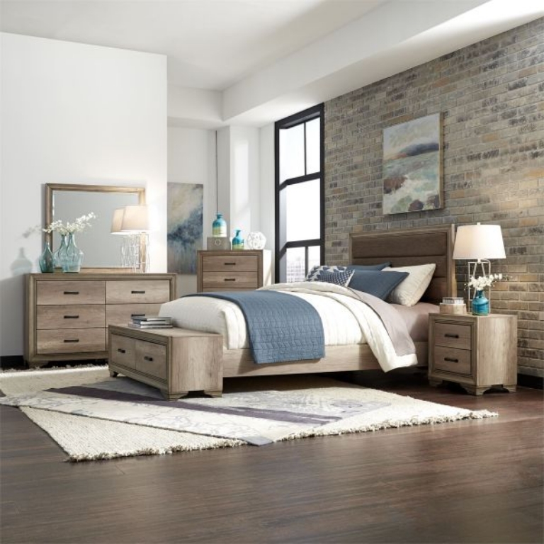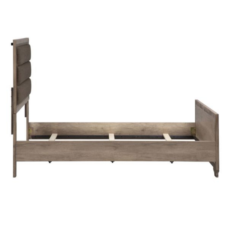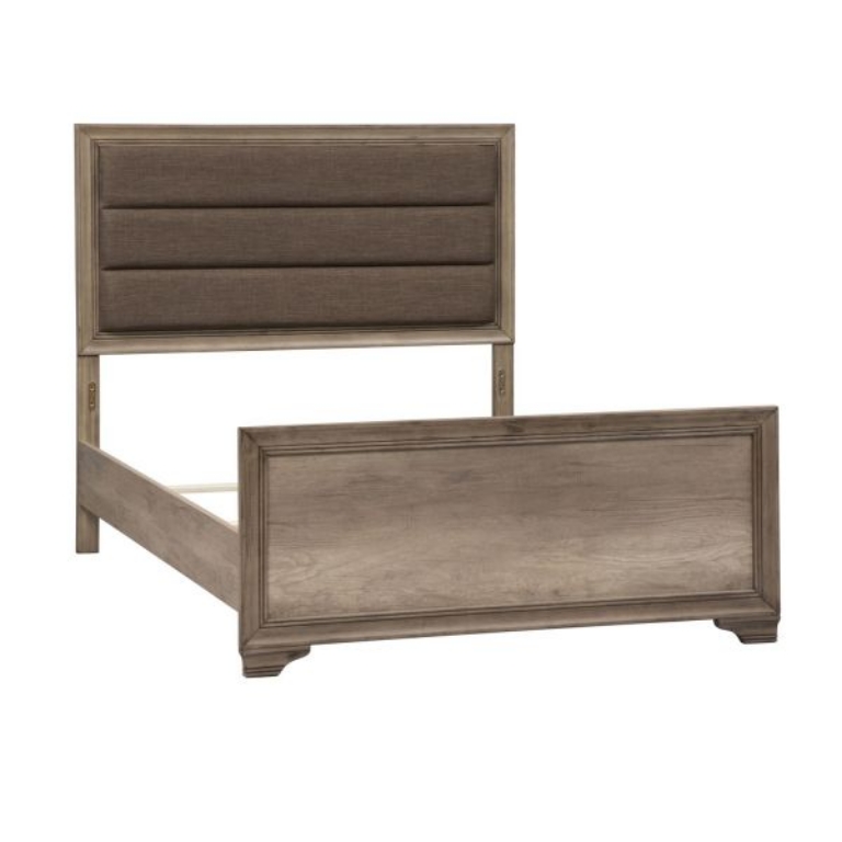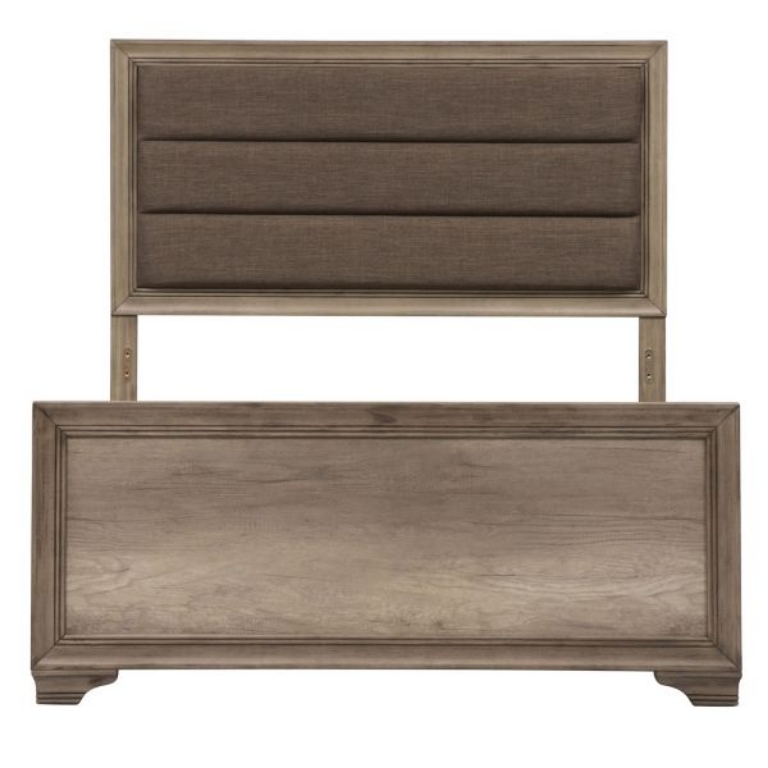 The clean lines of this upholstered bed create the perfect balance for condos, lofts, or second bedrooms. Crafted with melamine and a rubberwood solid frame, this piece features hook-on rails, a center support slat system, and a headboard with rolled upholstered inserts in a cool brown tweed. The melamine is scratch-resistant and is sure to allow this piece to last in any home.