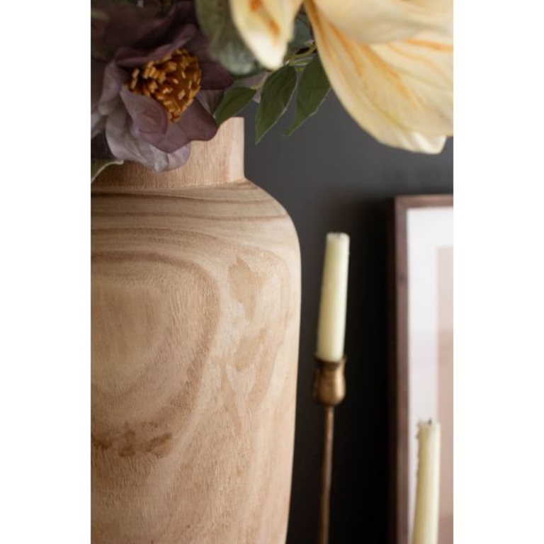 Use this tall wooden vase for all your best dried botanical arrangements. Combine grasses and florals to create classic or edgy looks in this beautiful but subtle piece. Use atop a piano or other water-unfriendly places.