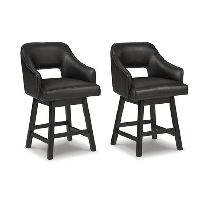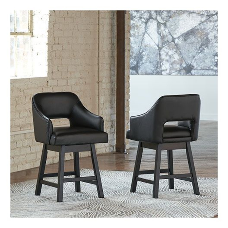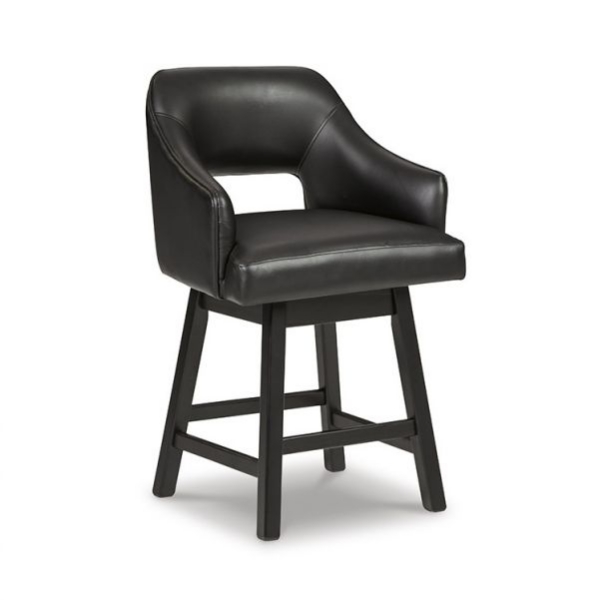 This striking Tallenger barstool invites you to experience a contemporary, modern style. Its comfortable cushioned seat, self-returning swivel, and contoured back perfectly fit your needs. Luxurious faux leather upholstery is a sensational touch.