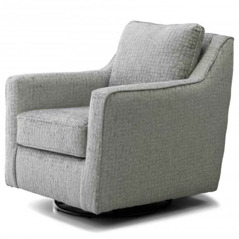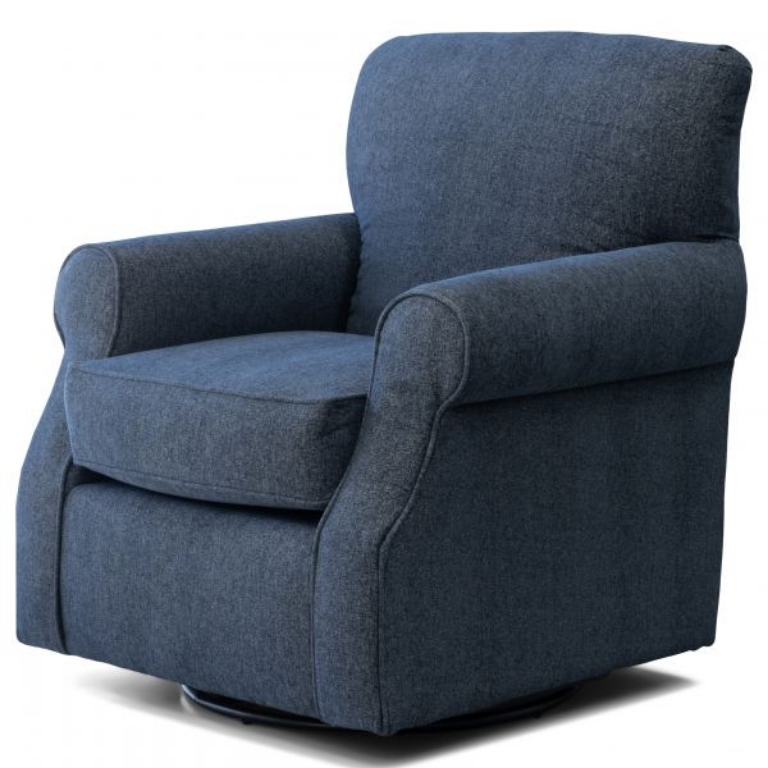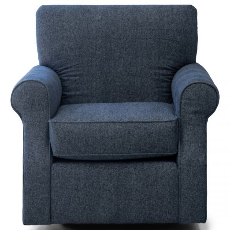 Wonderful as an accent chair, this upholstered chair has an attached back and setback rolled arms. It sits on a swivel base to allow for flexibility in your living space.