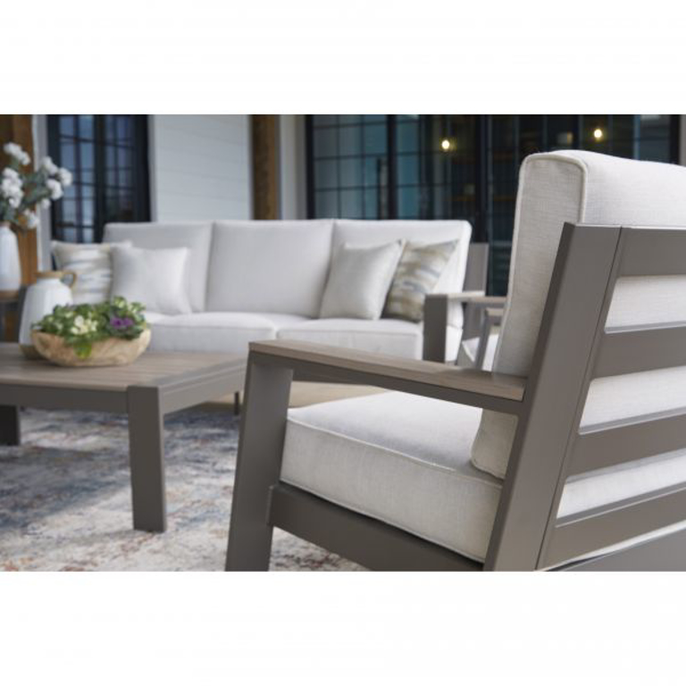 Natural neutrals are all the rage these days. Embrace the style trend with this outdoor lounge chair. Crafted with a mix of aluminum and an HDPE material for exceptional durability and weather resistance, this comfortably cushioned chair takes outdoor living to a whole new level. Rest assured, the thick seat and back cushions are wrapped in our exclusive Nuvella® high-performance fabric that’s fade-resistant, stain-resistant and a breeze to clean.