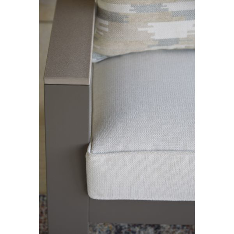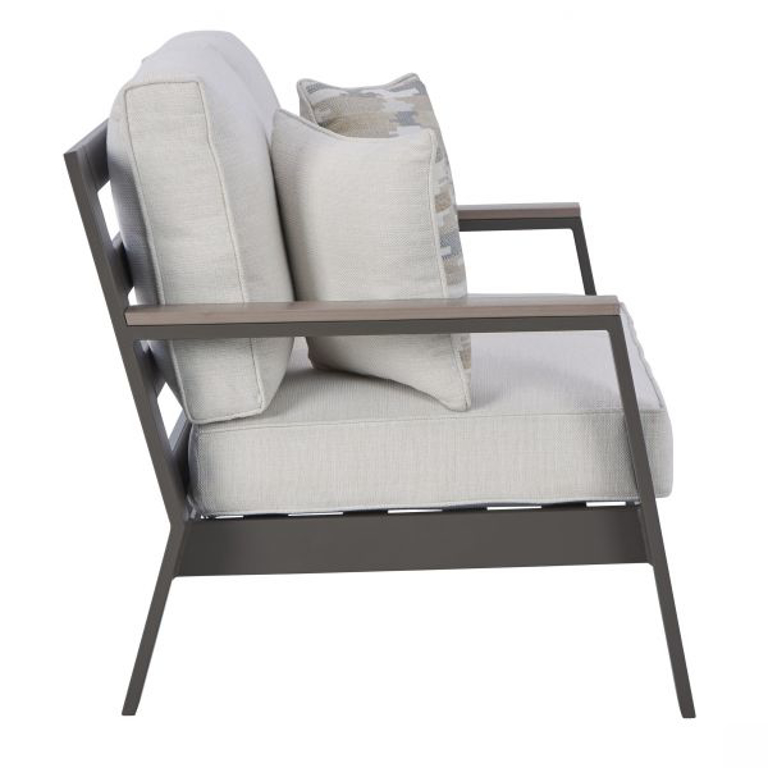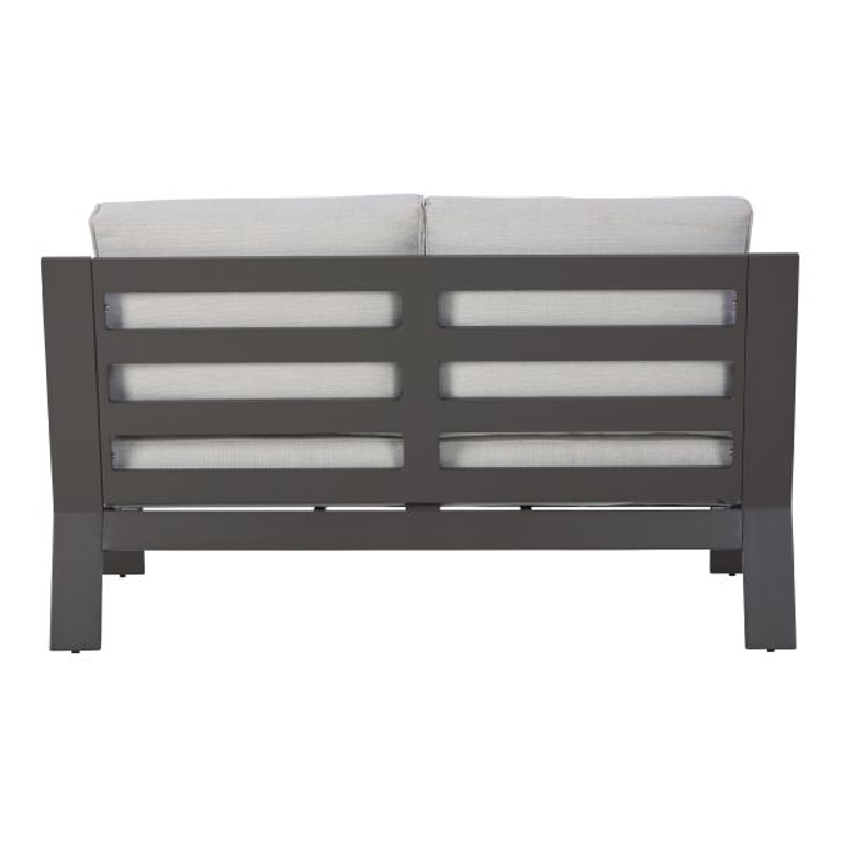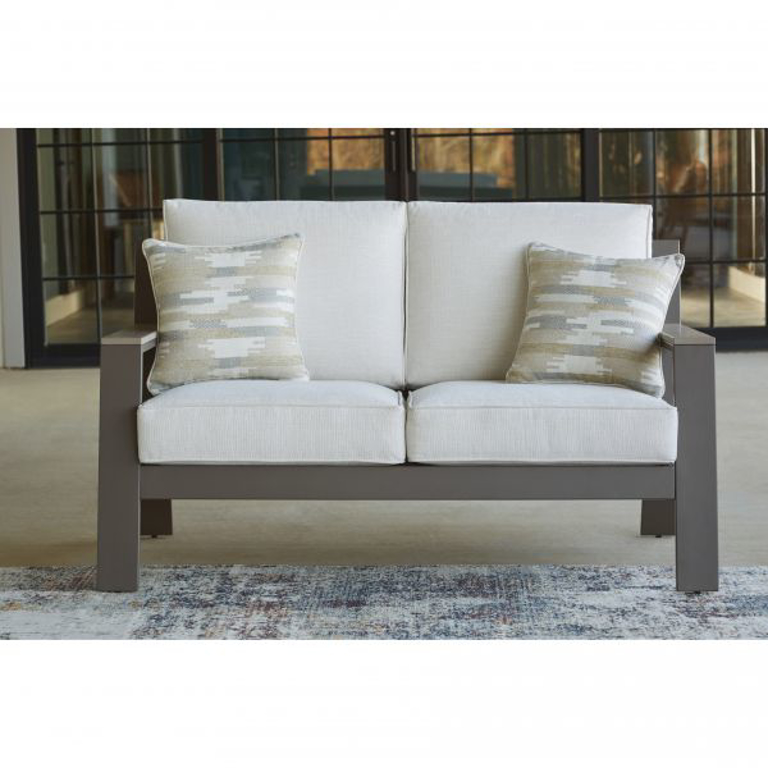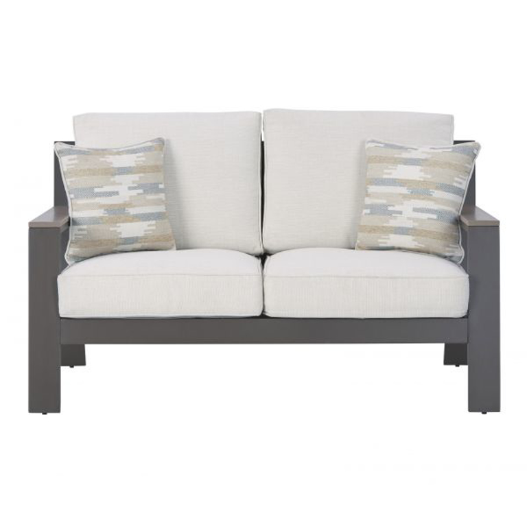 Natural neutrals are all the rage these days. Embrace the style trend with this outdoor loveseat. Crafted with a mix of aluminum and an HDPE material for exceptional durability and weather resistance, this comfortably cushioned loveseat takes outdoor living to a whole new level. Rest assured, the thick seat and back cushions are wrapped in our exclusive Nuvella® high-performance fabric that’s fade-resistant, stain-resistant and a breeze to clean.