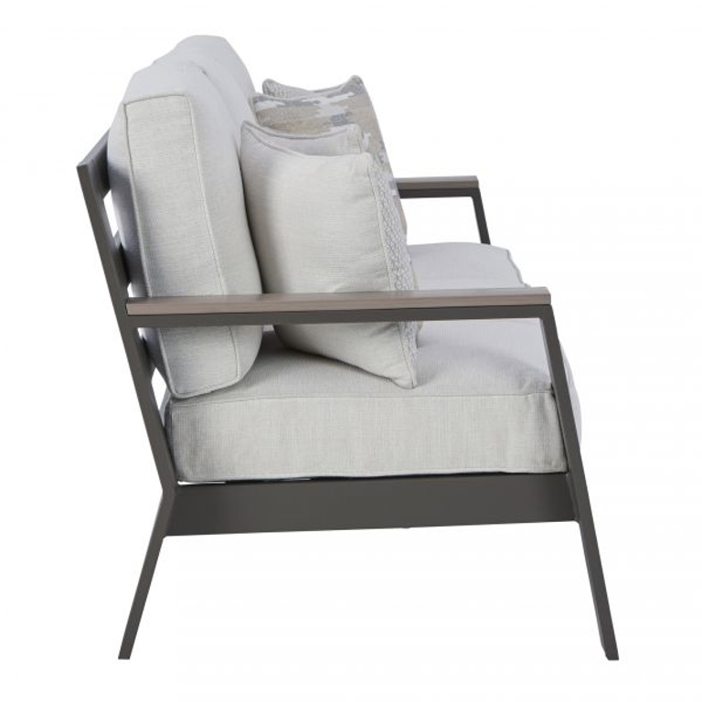 Natural neutrals are all the rage these days. Embrace the style trend with this outdoor sofa. Crafted with a mix of aluminum and an HDPE material for exceptional durability and weather resistance, this comfortably cushioned sofa takes outdoor living to a whole new level. Rest assured, the thick seat and back cushions are wrapped in our exclusive Nuvella® high-performance fabric that’s fade-resistant, stain-resistant and a breeze to clean.