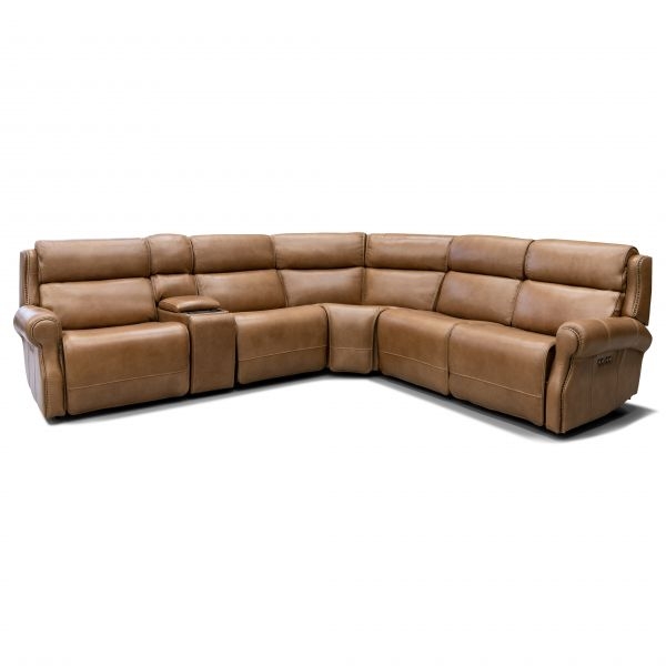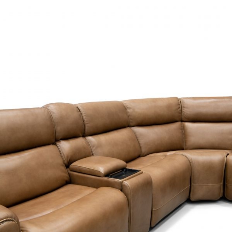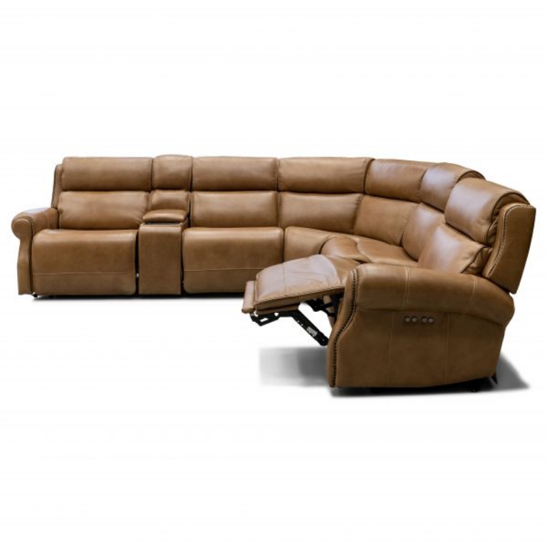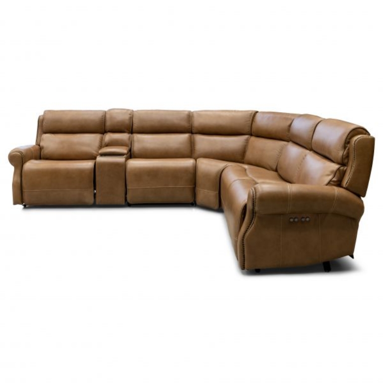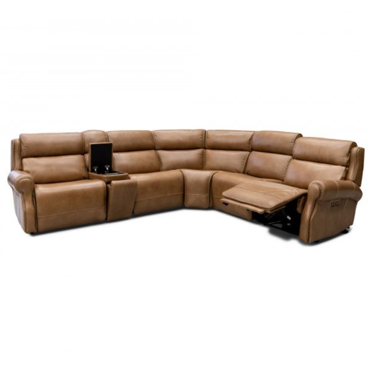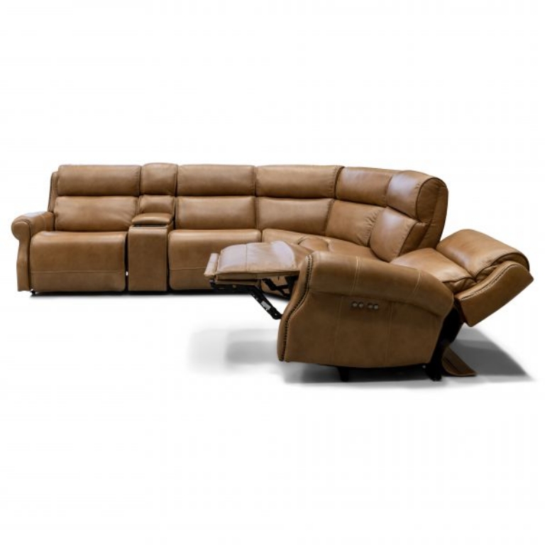 This modernly styled sectional will be perfect for your entertaining space. It features power reclining, power headrests, storage console with cupholders, and USB ports that are sure to impress in correlation with its seamless, cool design. This sectional is built to last. Top Grain Leather on all front facing surfaces. The frame is corner blocked, nailed, glued and screwed for continuous strength. Wood is kiln dried hardwood, no particle board. Cushioning is 2.0 density polyurethane foam and the cover is finished with contrast thread stiching and nail head trim. Just sit back and relax with your friends with the multiple seating options this sectional has to offer.