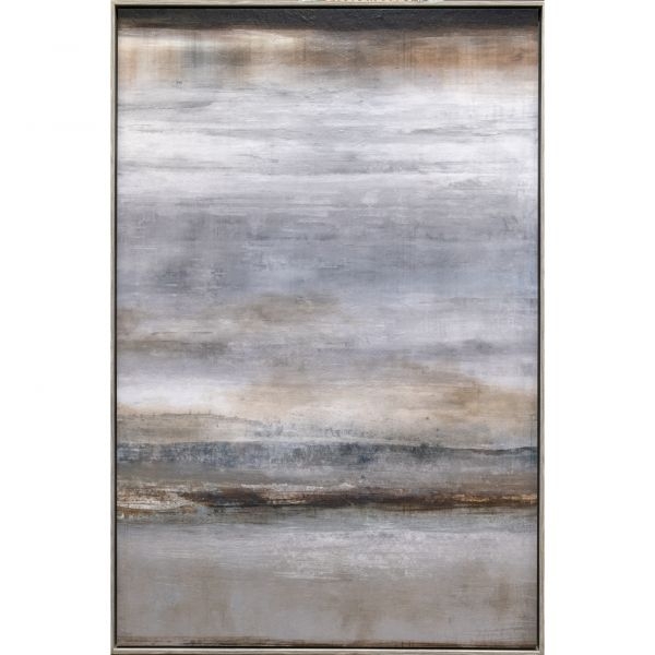 Elevate your walls with sophistication with this abstract image titled, "Undisturbed". Showcasing a mix of soft neutrals of blue, gray and warm tones on a framed canvas, this wall art décor will make a perfect finishing touch for any room.