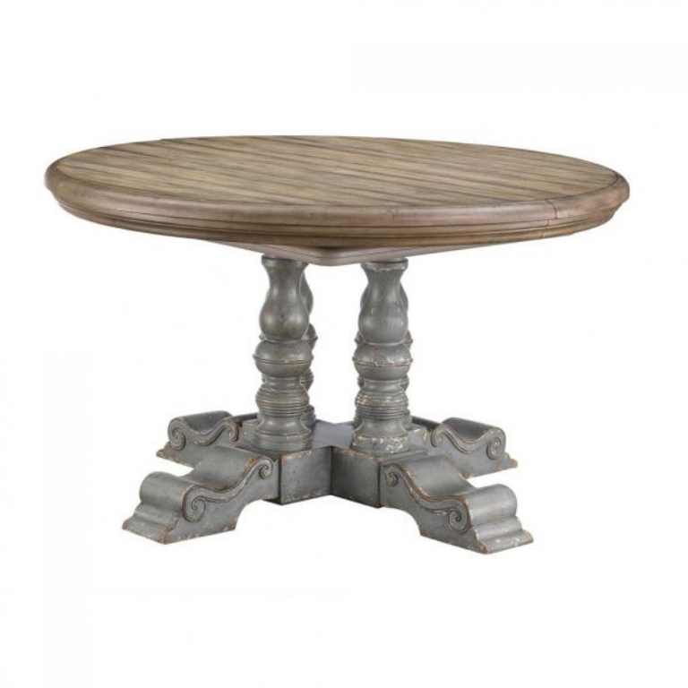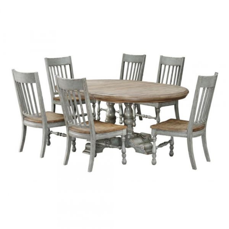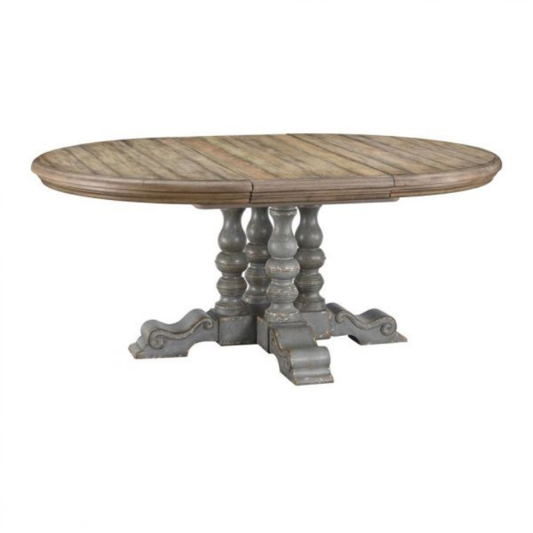 The size you need and the look you want, that is what you get with this amazing Dining Table finished in our Weston Aged Blue Grey with a natural wood tone plank top. Beautifully turned legs form the central column that support the top, which is easily expanded from a cozy circle to a spacious oval with the ease of an insert. Perfect for everyday use or expandable for family and entertaining guests!