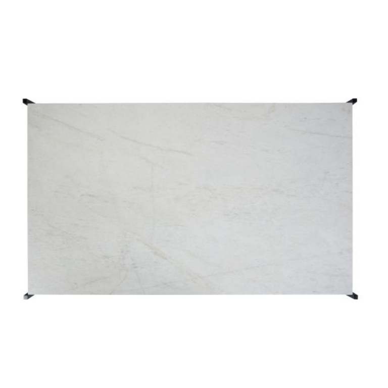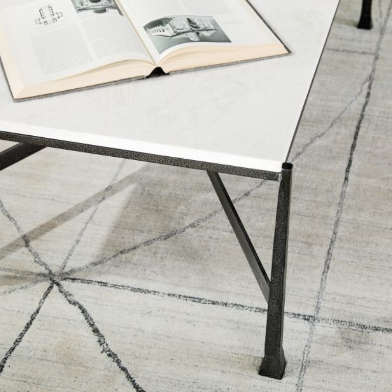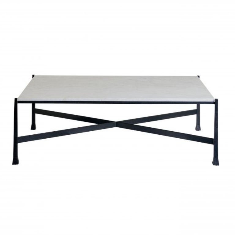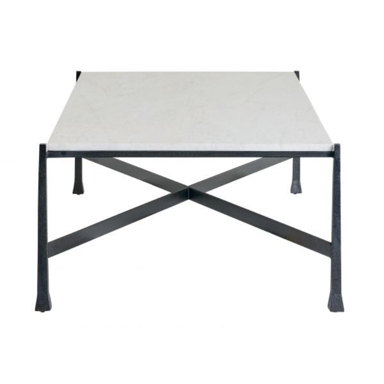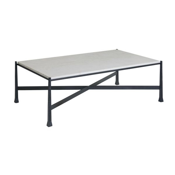 A stylish standout in any room, the Whitestone rectangular cocktail table sets the tone with its elegant natural stone top and shapely cast iron legs. The 1 ¼†thick table top in lustrous Mexican lagoon marble dazzles with unique color ranges from white to gray to pale pink. The slender legs and cross-piece of the textured cast iron base are powder coated with dramatic ebony, with levelers to ensure an even surface.